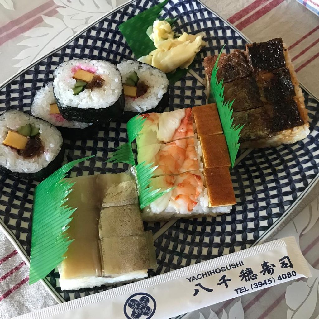 バッテラ・穴子・エビ玉の押し寿司と太巻きを。