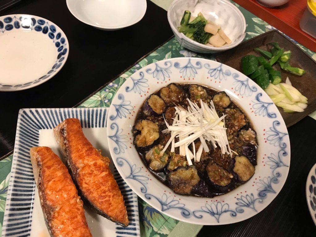 ナスの揚げ煮(ニンニク・生姜・長ネギ)