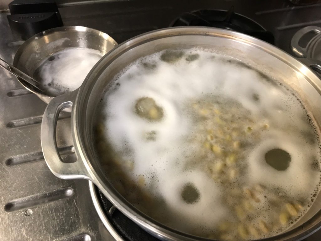台所仕事の合間を見計らって大豆を煮ることに。