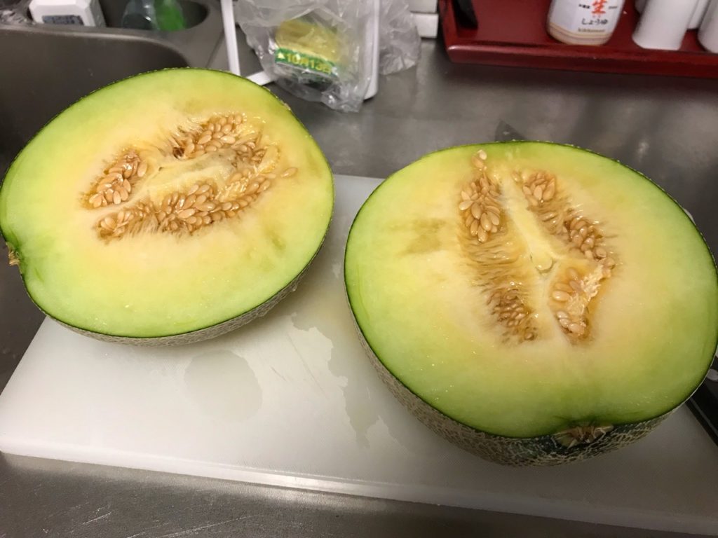 メロンは丸ごと一個、ふうふう言って運んでいます。