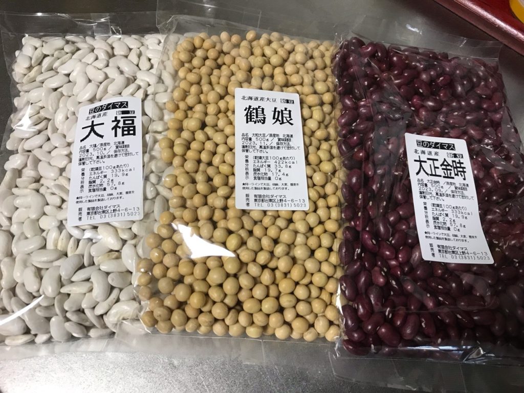 大正金時・白インゲン豆・大豆