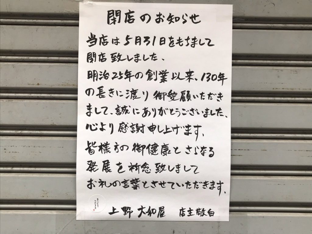 またひとつお気に入りのお店が姿を消して・・