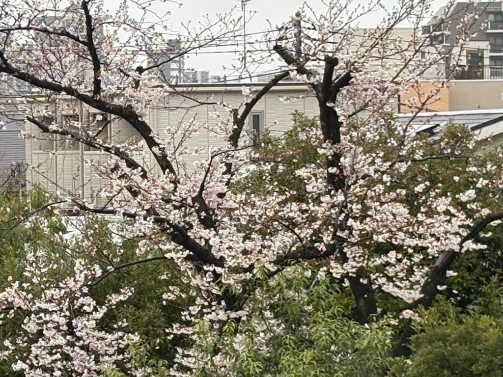 ベランダから見える桜と