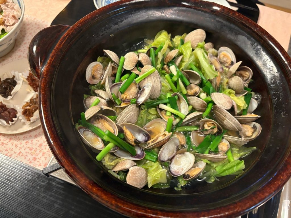 その日の夕食は”あさりと春キャベツの酒蒸し”