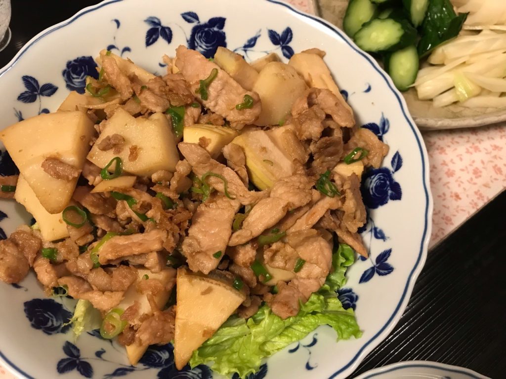 きりたんぽ鍋を初めて食べた夫は満足の様子。